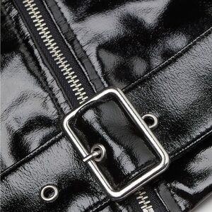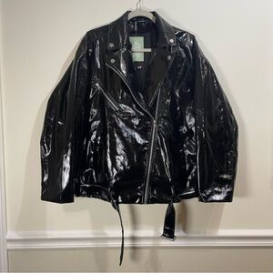 H&M NWT Black Patent Biker Jacket Oversized Small