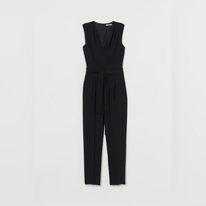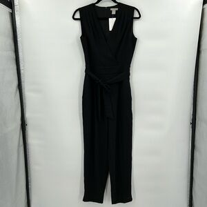 H&M NWT Black Sleeveless V Neck Jumpsuit Women's 4 Tie Waist Business Career
