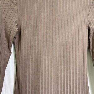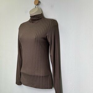 H&M - NWT Dark Beige Ribbed Stripe Long Sleeve Mock Neck Blouse Size Small