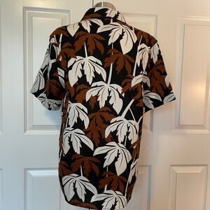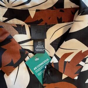 H&M NWT Men's Black, Brown, White Tropical Print Button Up Shirt, size Small