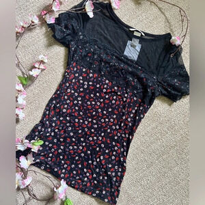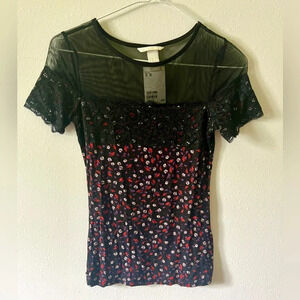 H&M NWT Mesh & Floral Short Sleeve Top - XS