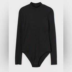 H&M - NWT Ribbed Black Mock Neck Long Sleeve Snap Closure Bodysuit Size XS
