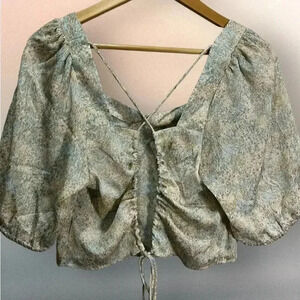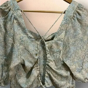 H&M NWT Women's Floral Open Back Crop Blouse 3/4 Sleeve Size L