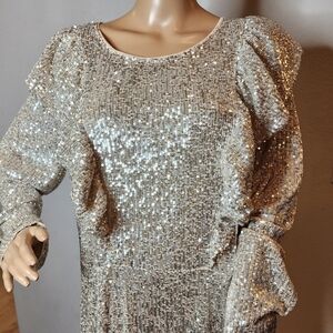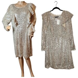 H&M NWT flounce trim beige sequin dress. Women's size XL.