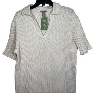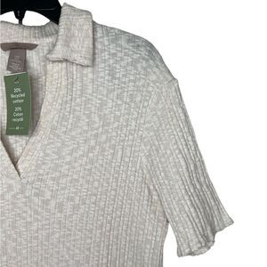 H&M Natural White Short Sleeve Collared Ribbed Dress Size Medium