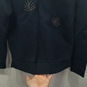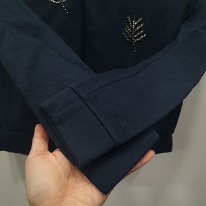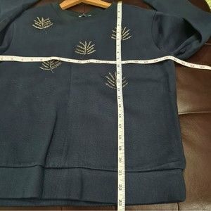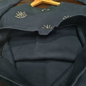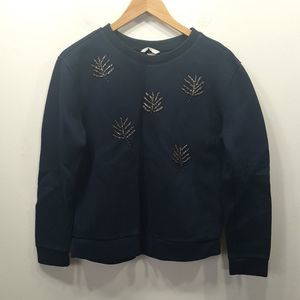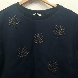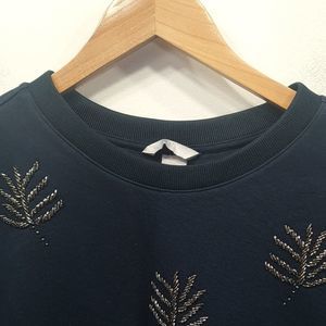 H&M Navy Blue Beaded Longsleeves Crewneck Sweatshirt Women's Size S