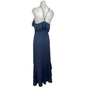 H&M Navy Blue Chiffon Sleeveless Halter Tiered Frilly Elastic Waist Party Cocktail Wedding Maxi Dress 8