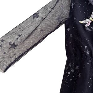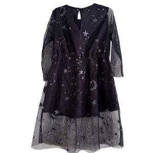 H&M Navy Blue Dress Stars Glitter Dragonfly Planet Space Mesh, lined, sheer sleeves