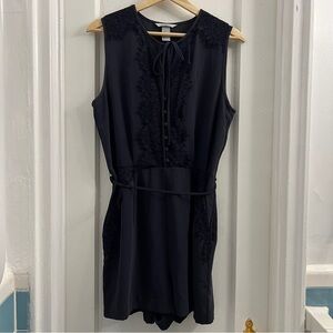 H&M Navy Blue Lace Romper Playsuit Jumpsuit, US 12