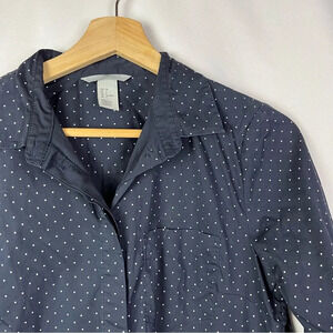 H&M Navy Blue & White Polka Dot Long Sleeve Button Down