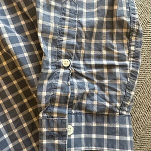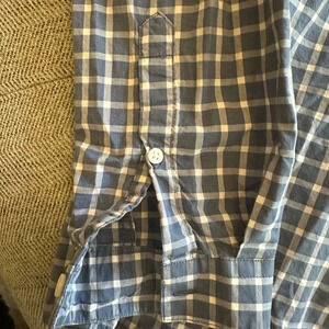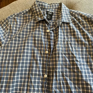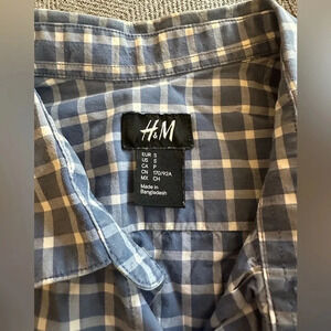 H&M Navy Blue and White Plaid Collared Dress Button Down Shirt Size Small