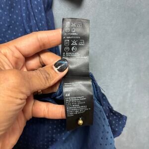 H&M Navy Dotted Sheer Button Front Blouse Size 10