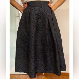 H&M Navy Jacquard Midi Pleated A-line Skirt With Pockets