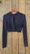 Chic navy crop top with keyhole detail. Long sleeves for a sleek look. Perfect for pairing with high-waisted bottoms.