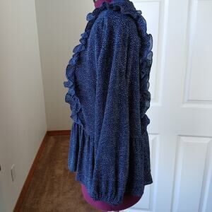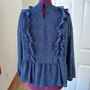 H&M Navy Speckle Ruffled Peplum Blouse 12 sheer retro 80s repaired LS