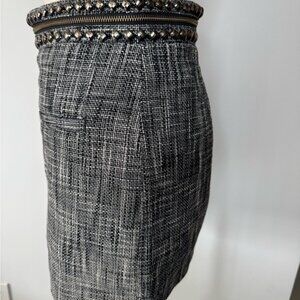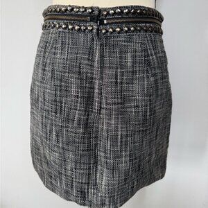 H&M Navy Tweed Mini Skirt with Embellished Waist – Size 6