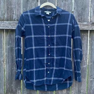 H&M Navy Window Pane Plaid Button Down stop | 2