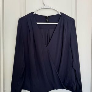 Elegant navy wrap blouse. Perfect for any occasion. *sd
