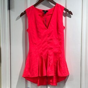 H&M Neon Pink V-Neck Peplum Zipper Back Top