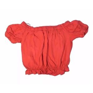 H&M Off the Shoulder Midriff Shirt in Terracotta, Women's S, Crop Top Cap Sleeve