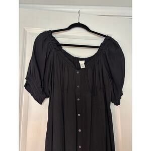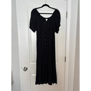H&M Black Off Shoulder Button Front Maxi Dress Crepe Fabric Women’s Size XL
