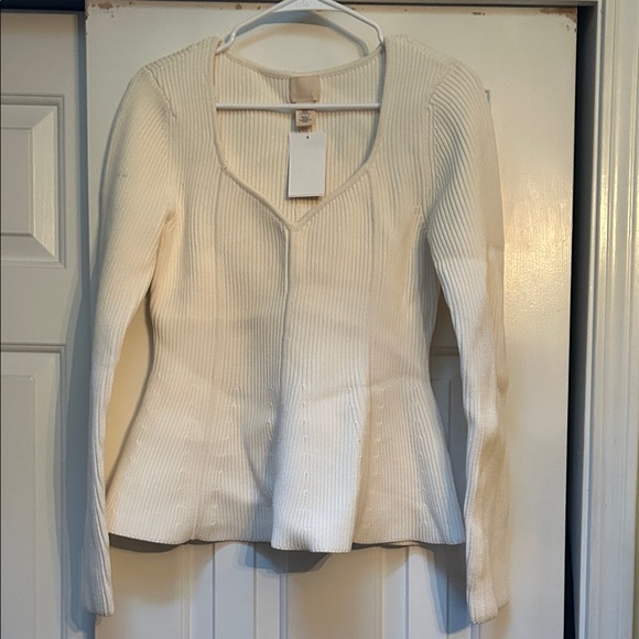 H&M Off-White Ribbed Knit Top