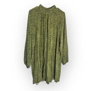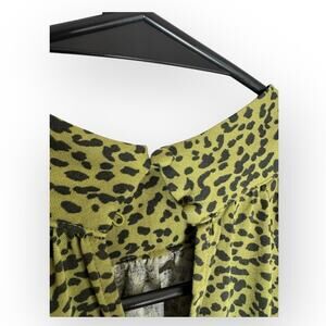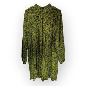 H&M Olive Animal Leopard Print Boho Flowy Oversized Mini Dress Sz 10 80s
