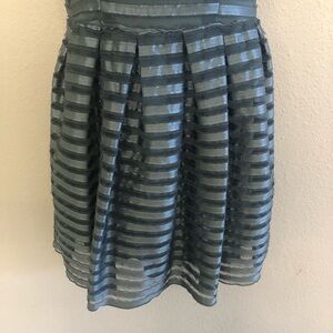 H&M Olive Striped Mesh Spaghettini Straps Fit & Flare Mini Dress Size S