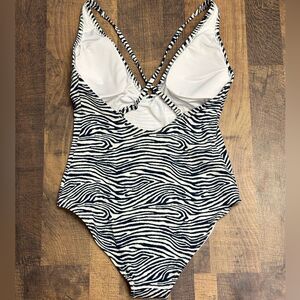 H&M One Piece Swimsuit Dark Blue Zebra Print Cross Back Size 8