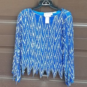 H&M Open Front Black Blazer Jacket Trim With Silver Chain