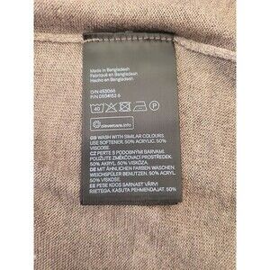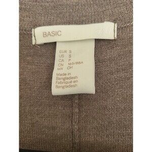 This H&M cardigan in size small is a classic brown sweater featuring a mock neck, long sleeves, and a tight-knit design. It has an open front style, making it a versatile piece suitable for travel, casual wear, work, or business settings. Made from viscose and acrylic materials, this sweater is machine washable and perfect for the summer, fall, and spring seasons.