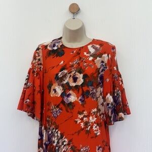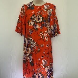 H&M - Orange Floral Short Sleeve Dress Size 2
