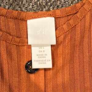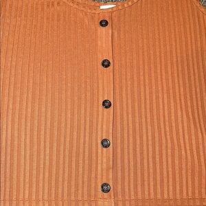 Vibrant orange tank top. Ribbed texture. Button-down front. Ideal for casual wear. Shell: 55% polyester 45% viscose