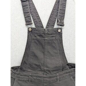 Design features: Adjustable shoulder straps with metal hardware; front bib pocket; belt loops; side button closures; front hand pockets; back patch pockets