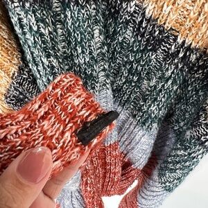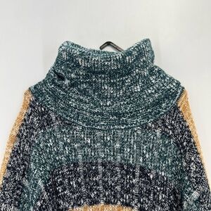 H&M Oversized Color-block Multicolor Striped Knit Turtleneck Poncho Sweater