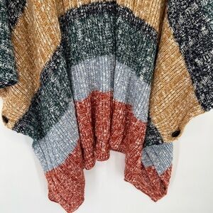 Striped multicolor turtleneck poncho wide sleeve with front button side details. Oversized fit.