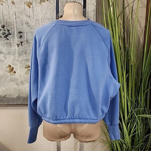 Blue, Periwinkle, Long Sleeve, Ribbed Neck and Cuffs, Cropped, Oversized, Drawstring, Sweatshirt, Crew Neck, Raglan Sleeve, Casual, Atheleleisure