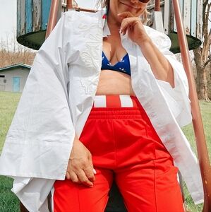 H&M Oversized White Poplin Embroidered Beaded Top Size XL