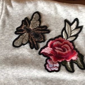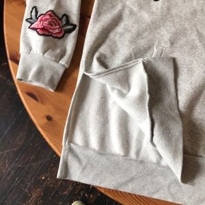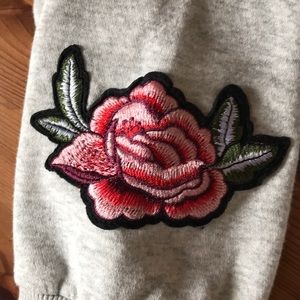 H&M PATCH HOODIE men's size large, Grey sweatshirt HOODIE with bird and rose patches.