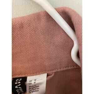 H&M PINK DENIM JACKET Size M "what would Dolly Do" painted on back with stars.