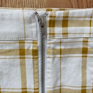H&M PLAID MINI SKIRT YELLOW WHITE ZIP FRONT SIZE SMALL