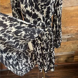 This elegant H&M dress features a classic black and white color scheme, perfect for any occasion. The long sleeves add a touch of sophistication, while the design ensures a flattering fit. Ideal for both casual and formal settings, this dress is a versatile addition to any wardrobe.