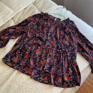 H&M Paisley Peplum Ruffle Long Sleeve Blouse - Size 14