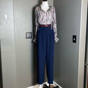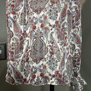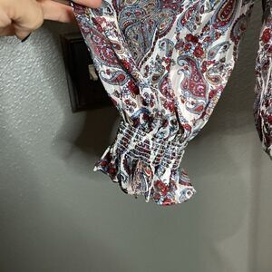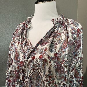 H&M Paisley Semi Sheer Striped Long Sleeve Blouse Tie Neck Peasant Top