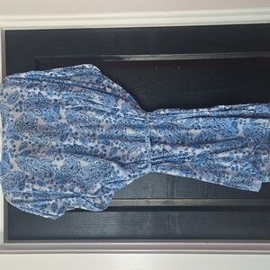 H&M blue and white paisley sheer caftan beach swimsuit cover-up. Size large. Comes with belt. Super cute and flattering on! No flaws, pilling, stains, tears, or holes. Perfect for the beach, pool, cruise, or as resortwear.