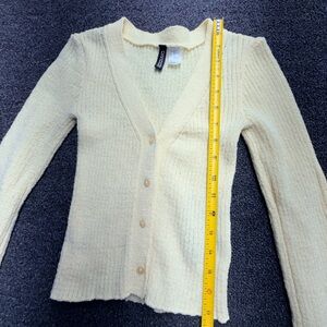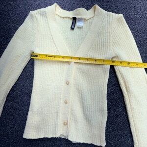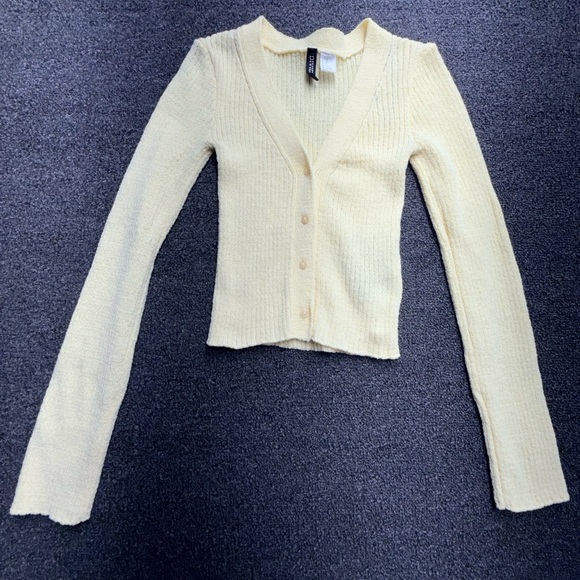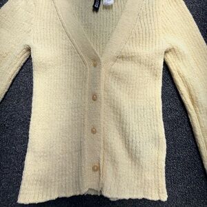 H&M Pale Yellow Ribbed Button-Front Cardigan