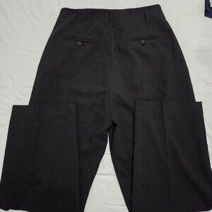 H&M Pants, black, size 10, made in Bangladesh, pleated front with belt hoops, zipper closure, pockets at each side, tapered leg, unlined, two unusable pockets in back, 75% polyester, 20% Viscose, 5% Elastane, machine wash, measures 16" across the waist, 41-1/2" top to bottom, 29" inseam.