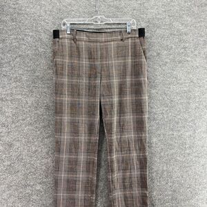 H&M Pants Women 14 Gray Plaid High Rise Flat Front Pull On Straight Chino Casual