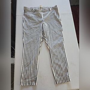 H&M Pants Womens Sz 16 White Black Striped Ankle Mid Rise Side Zipper 36x27
