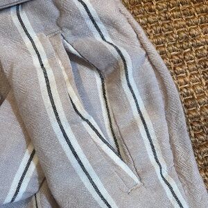 H&M striped linen pants. Excellent condition. Size 2 - true to size. Cream, white, and charcoal gray - versatile colors. Tie waist and tapered leg. Make an offer if interested and thanks for shopping!